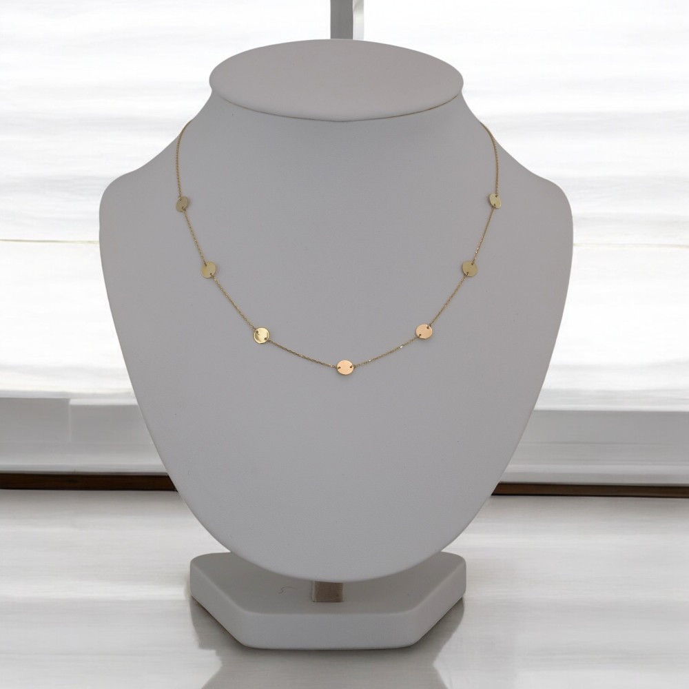 Náhrdelník zo 14 karátového zlata so 7 tolárovými príveskami.