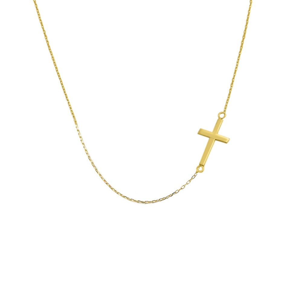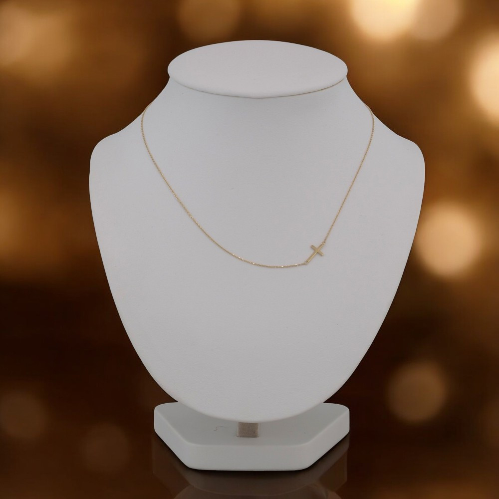 Náhrdelník zo 14 karátového zlata s integrovaným, ofsetovým krížikom.