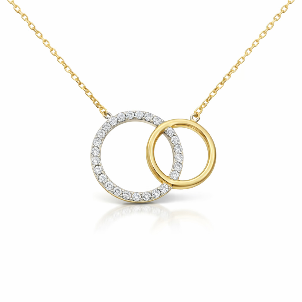 S dvoma do seba zapadajúcimi krúžkami, z ktorých jedna polovica je po celom povrchu zdobená kryštálmi zirkónu, čím dodáva svojmu nositeľovi špeciálny lesk.