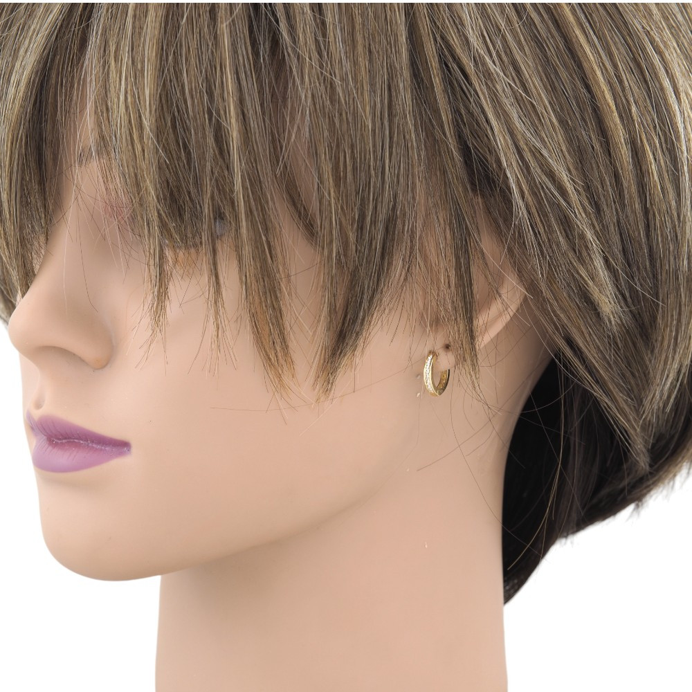 Vyrobené zo 14 karátového zlata cca. Kruhové náušnice s priemerom 12 mm, prvý polkruh je zdobený trblietavými zirkónovými kryštálmi.