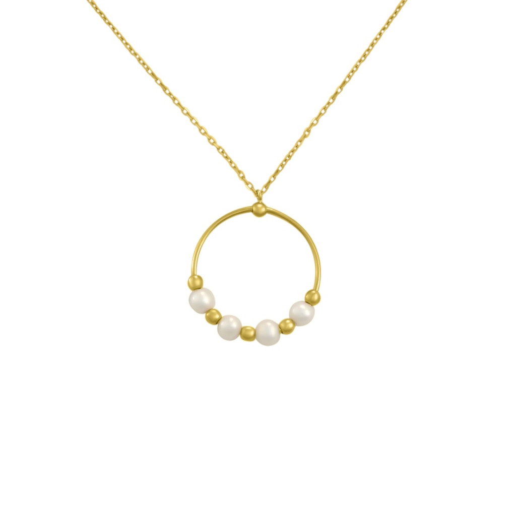 Náhrdelník zo 14k zlata s príveskom v tvare obrúčky a perlovým zdobením