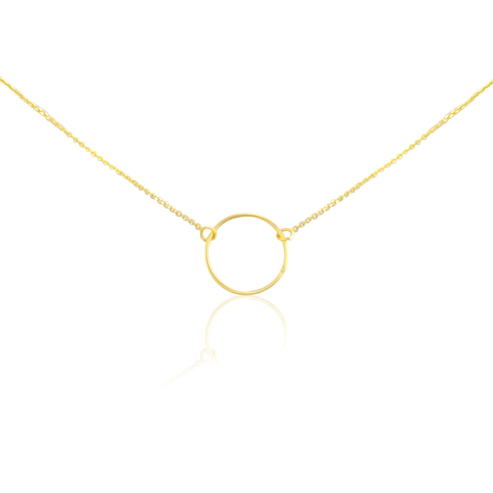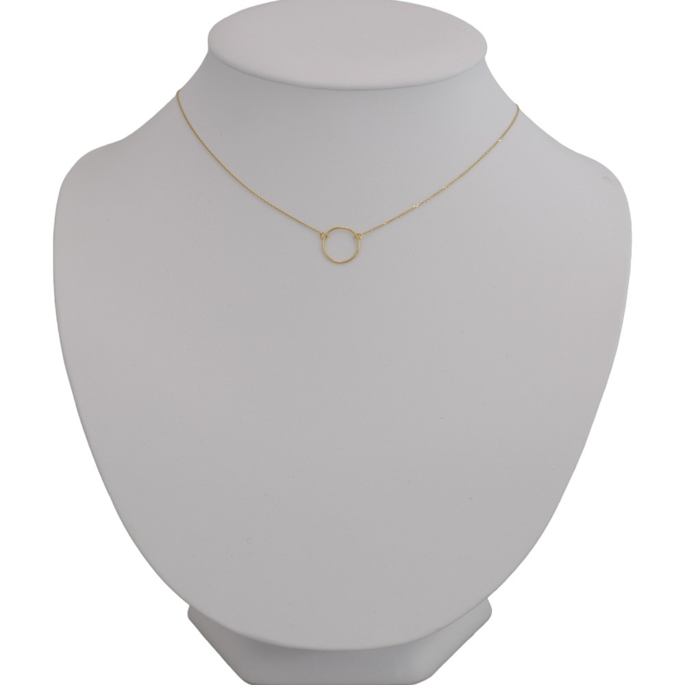 Náhrdelník zo 14 karátového zlata s jednoduchým príveskom vo forme obrúčky.