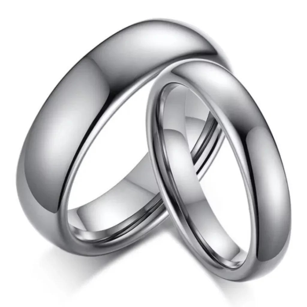 Klasický snubný prsteň striebornej farby z materiálu karbidu volfrámu.