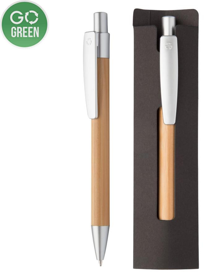 Bambusové guľôčkové pero, čierne papierové puzdro.