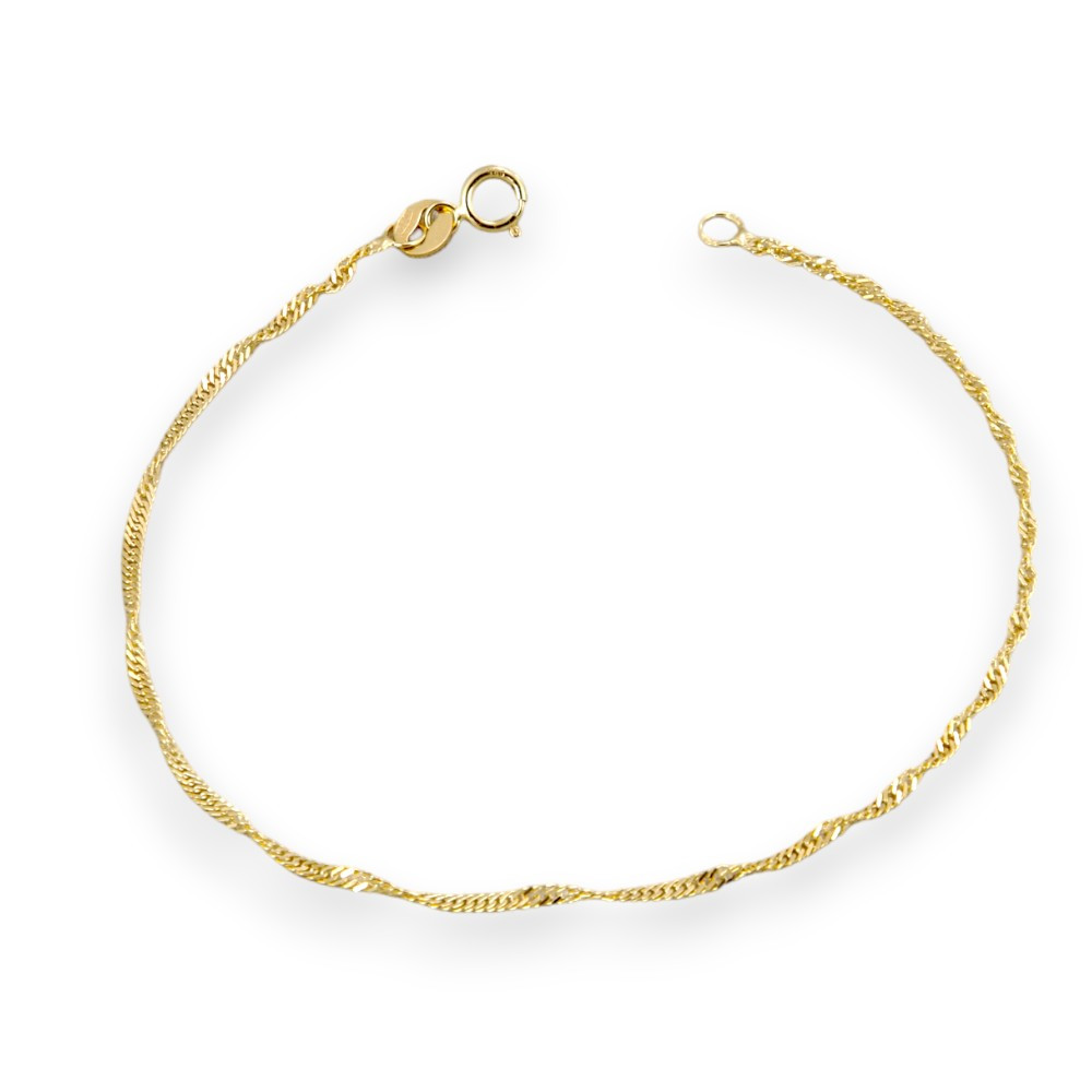 Náramok zo 14 karátového zlata, s obľúbeným singapurským vzorom zatočeným po celej dĺžke.