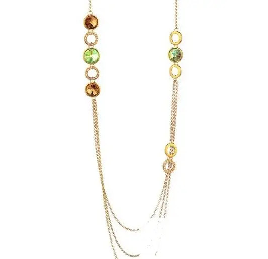 Trojitý dlhý náhrdelník oranžovej farby zdobený kryštálmi Swarovski