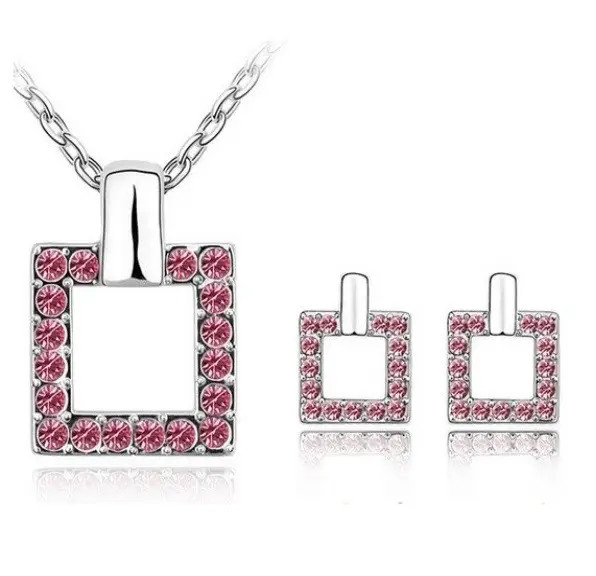 Štvorcová súprava šperkov, ružová