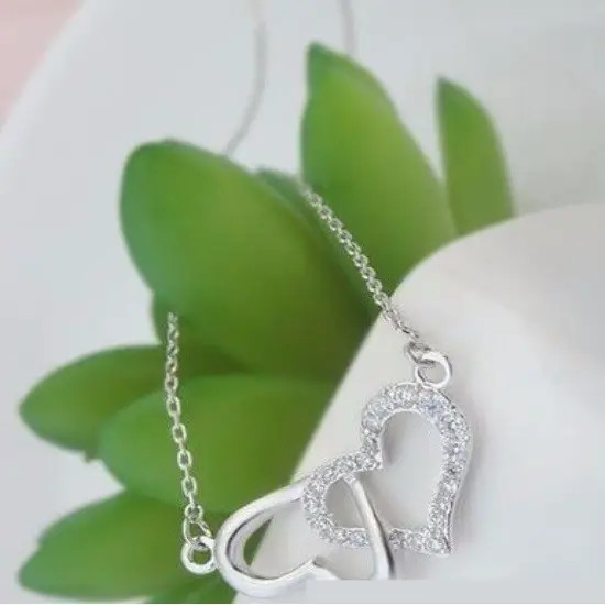 Prepletaný dvojitý náhrdelník v tvare srdca so zirkónovými kamienkami.