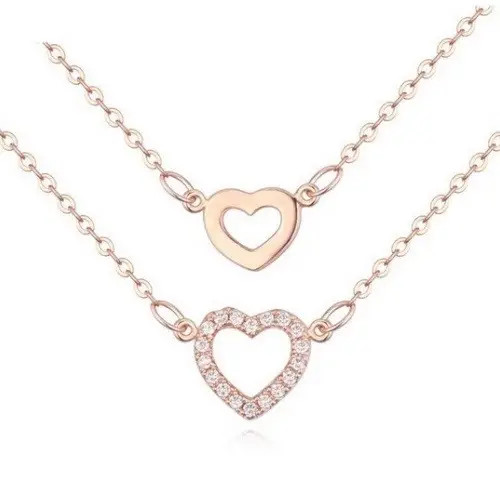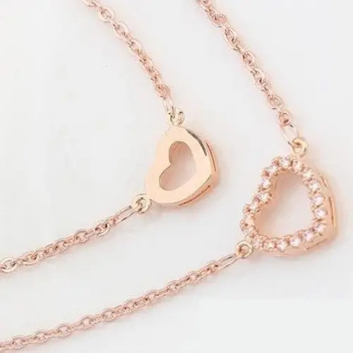 Módna dvojitá retiazka, náhrdelník s príveskom dvojité srdce so zirkónovými kameňmi.
