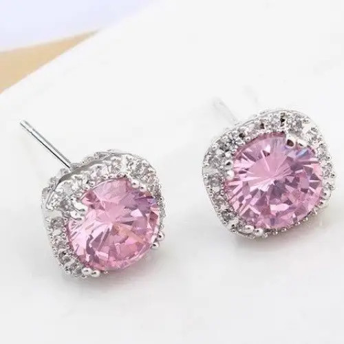 Okrúhle náušnice a náhrdelník osadené ružovými zirkónovými kamienkami.