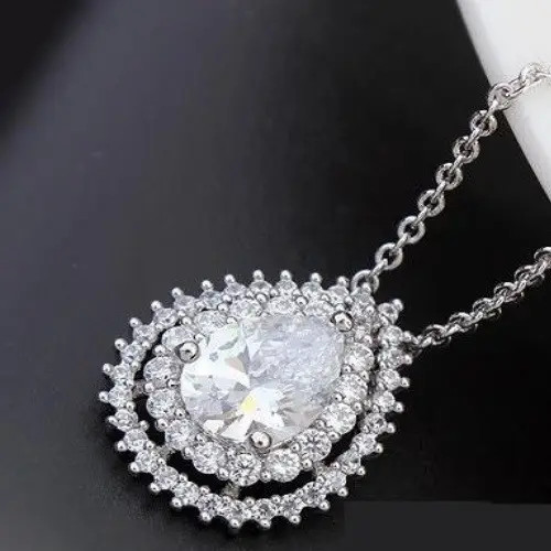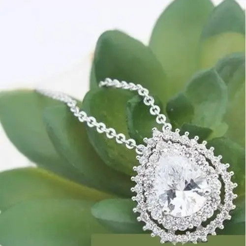 Módny náhrdelník s príveskom v tvare kvapky vody, so zirkónovými kamienkami.