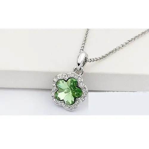 Súprava šperkov slivkový kvet, Peridot zelená, zdobená kryštálmi Swarovski