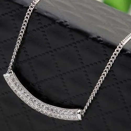 Trendy štýl, medený, zahnutý valčekový náhrdelník s príveskom, so zirkónovými kamienkami.
