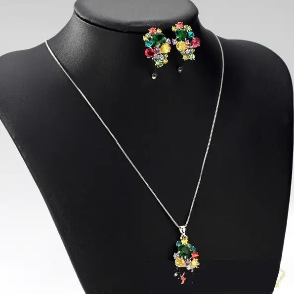 Módny náhrdelník a náušnice zo zinkovej zliatiny s rakúskymi kamienkami a zirkónovými kamienkami.