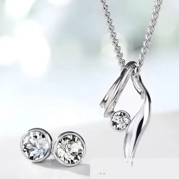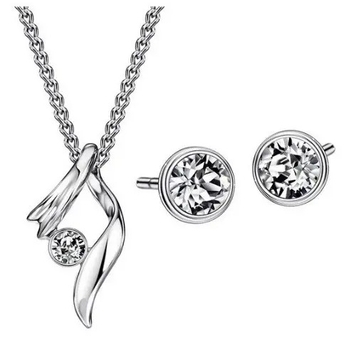 Jedinečné a elegantne vyzerajúce náušnice a náhrdelník z platinovej zliatiny zinku s rakúskymi kamienkami.