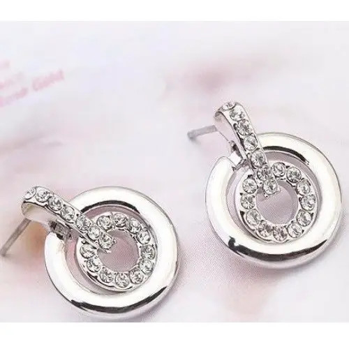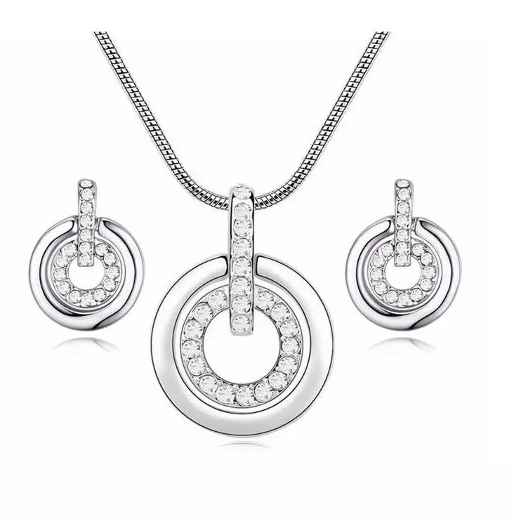 Módne rhodiované dvojkruhové príveskové náušnice a náhrdelník s českými kryštálmi.