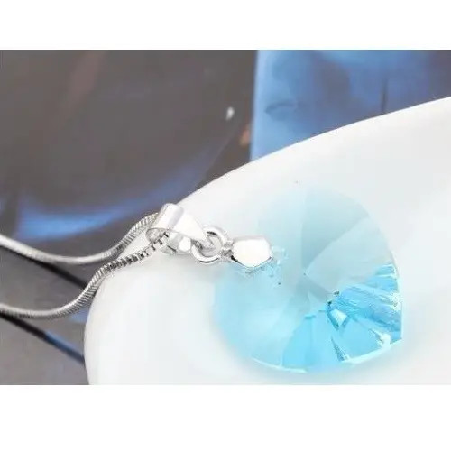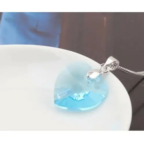 Náhrdelník s príveskom srdiečko, Aquamarine, zdobený kryštálmi Swarovski