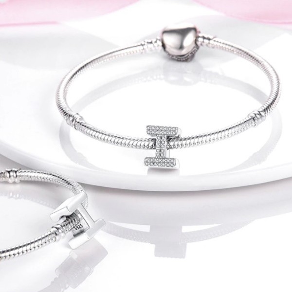 Vyrobené zo striebra, zdobené bielym zirkónovým kryštálom, v tvare písmena I na náramok a náhrdelník. Váži 3 g.