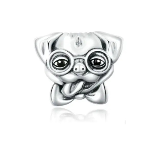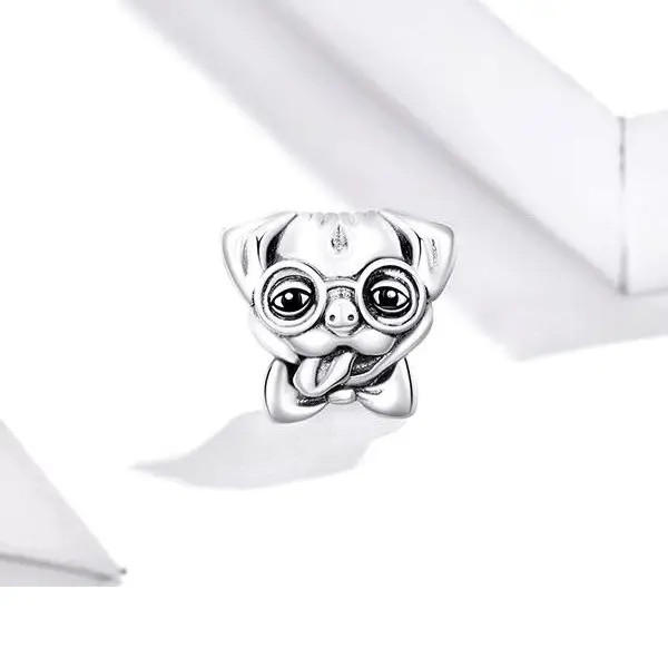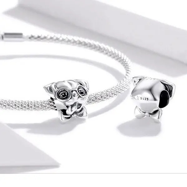 Strieborný prívesok v tvare šteniatka. Dá sa nosiť na náhrdelníku alebo náramku. Veľkosť 1,1 x 1,2 cm.