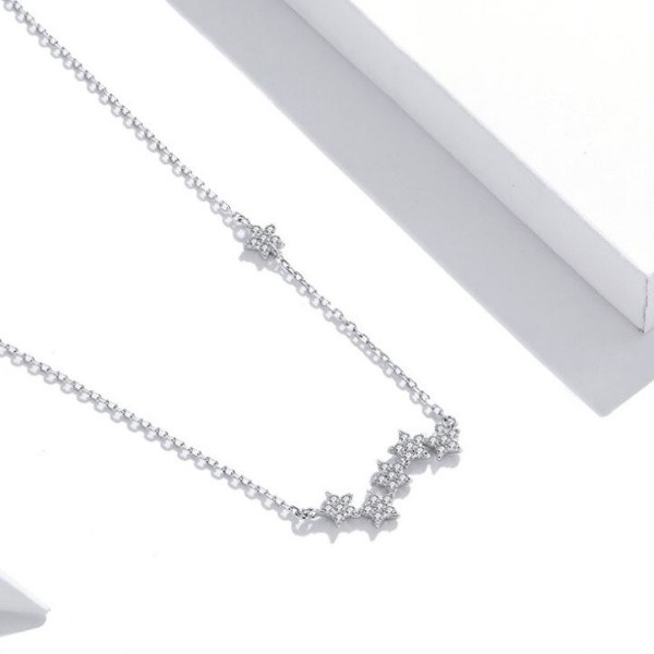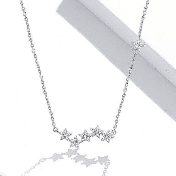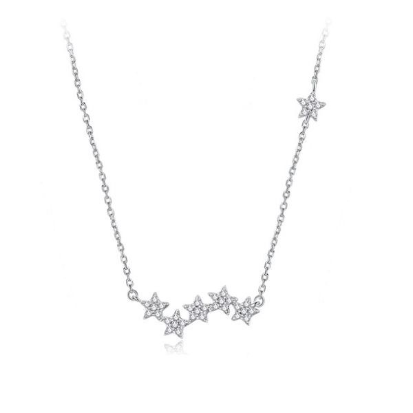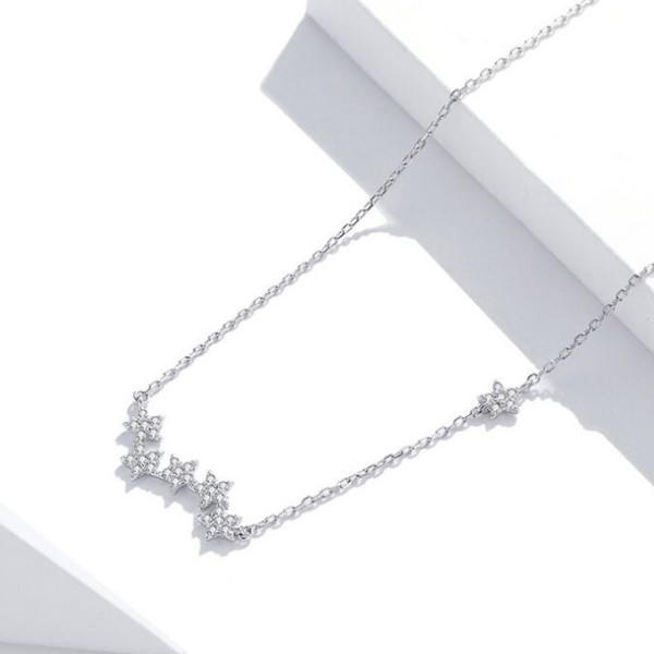 Náhrdelník vyrobený zo striebra s príveskom s vyobrazením hviezd a zdobený kryštálmi zirkónu. Dĺžka retiazky je 45 cm, váha 1,9 g.