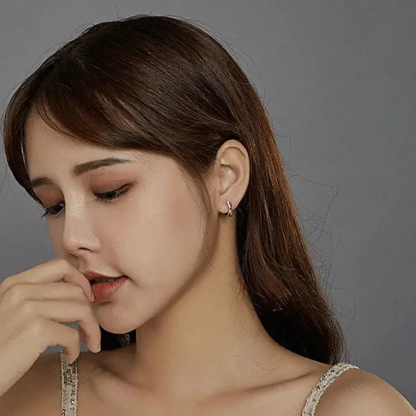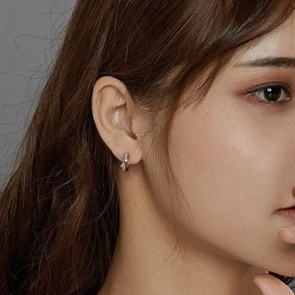 Náušnice vyrobené zo striebra, zdobené vzorom pripomínajúcim textúru kože. Veľkosť 1,3 x 0,4 cm. Hmotnosť 1,6 g.