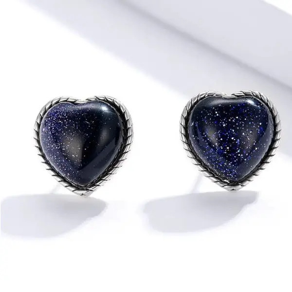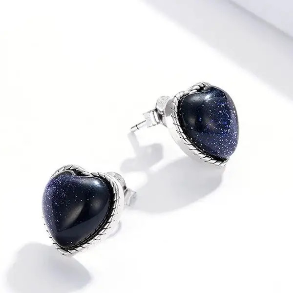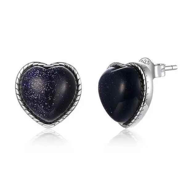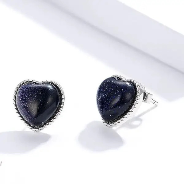 Napichovacie náušnice v tvare srdca zo striebra, zdobené modrým pieskovcom. Veľkosť 1,2 x 1,2 cm, váha 3,4 g.