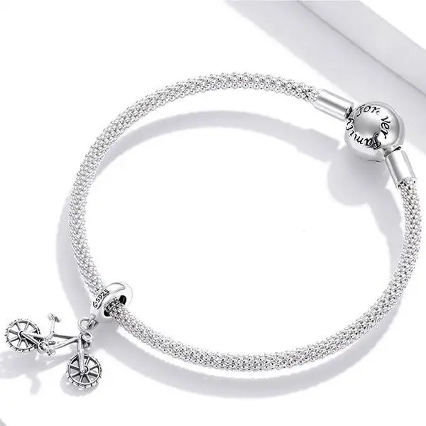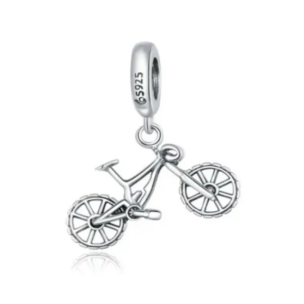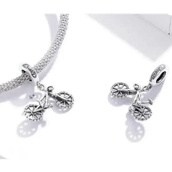 Prívesok vyrobený zo striebra, zobrazujúci bicykel, na náramky a náhrdelníky. Veľkosť 2,3 x 1,8 cm.
