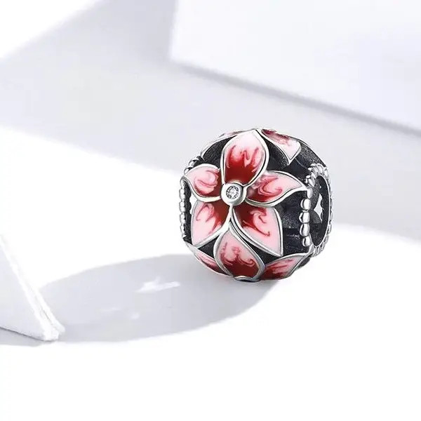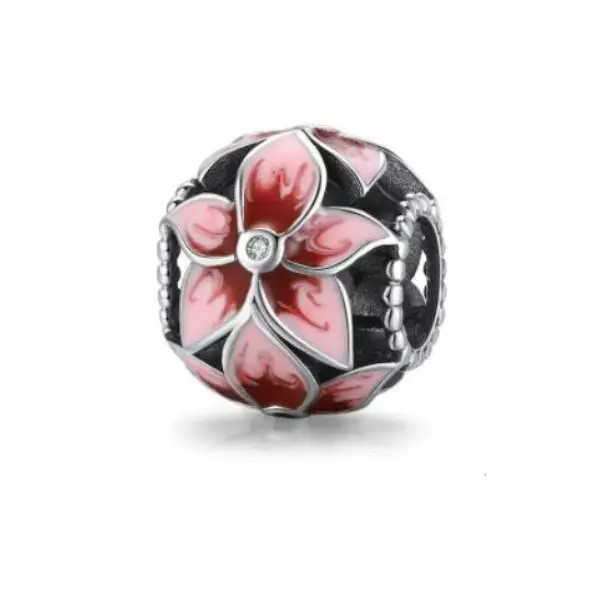 Prívesok vyrobený zo striebra, zobrazujúci kvet, zdobený bielym zirkónovým kryštálom. Dá sa nosiť na náramku alebo náhrdelníku. Veľkosť 1 x 0,9 cm.