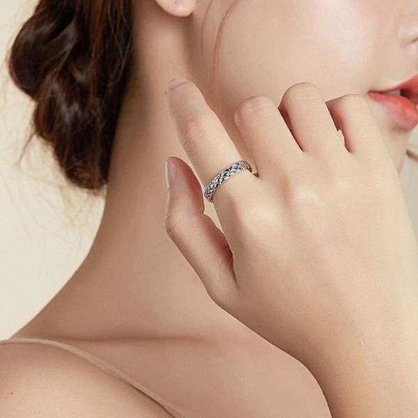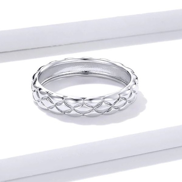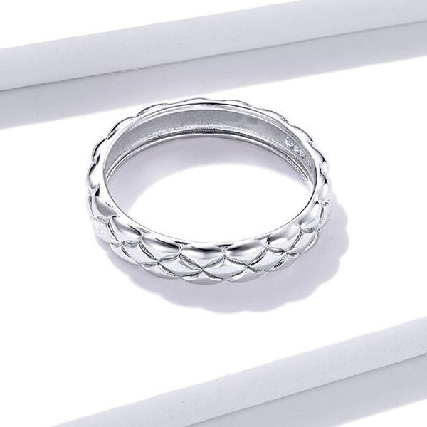 Dámsky prsteň zo striebra s jemne vyvinutým zapletaným vzorom. Jeho šírka je 0,4 cm, hmotnosť 2,5 g.