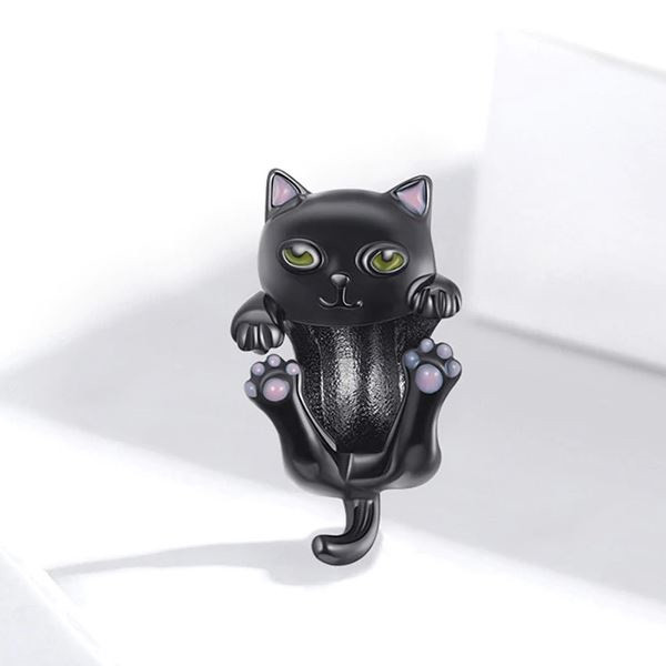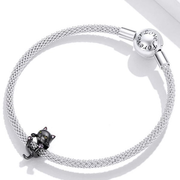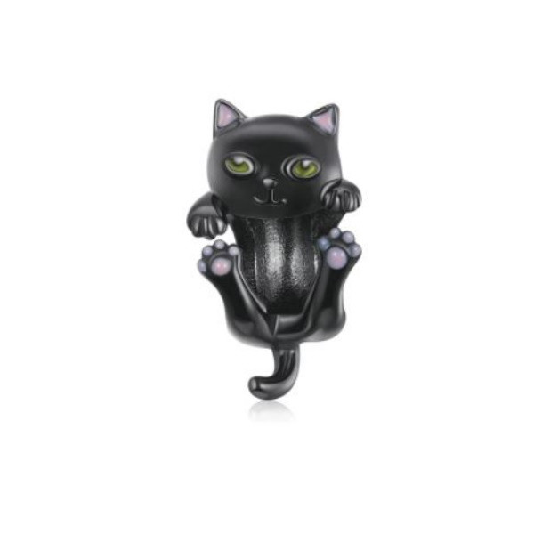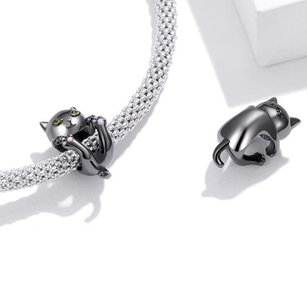 Strieborný prívesok zobrazujúci čiernu mačku na náramky a náhrdelníky. Veľkosť 1,2 x 0,7 cm Prívesok je kompatibilný s náramkami typu Pandora a Pandora.