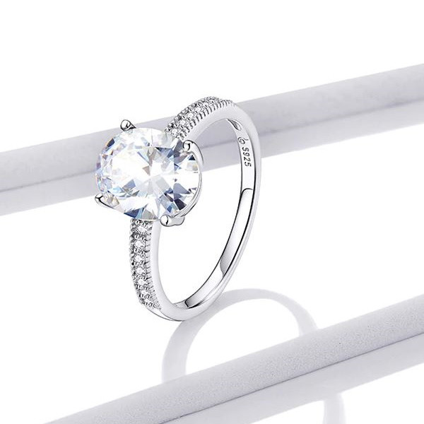 Strieborný zásnubný prsteň s bielym kryštálom, veľkosť 6