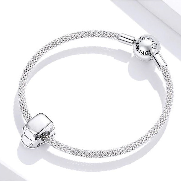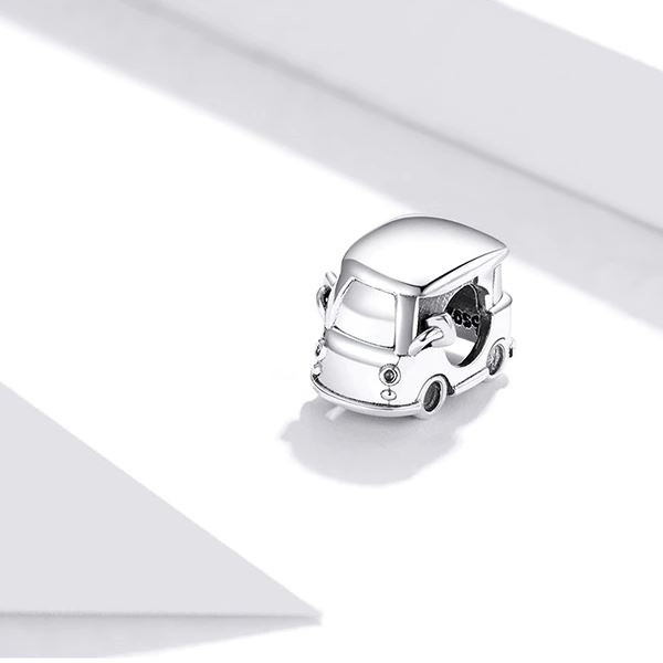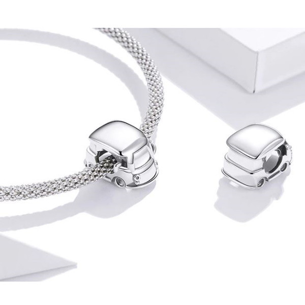 Prívesok zo striebra, zobrazujúci malé auto, na náramky a náhrdelníky. Veľkosť 0,9 × 0,9 cm Prívesok je kompatibilný s náramkami typu Pandora a Pandora.