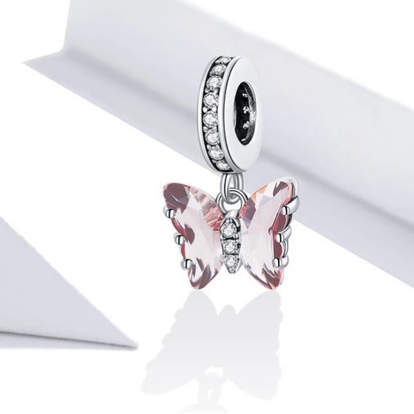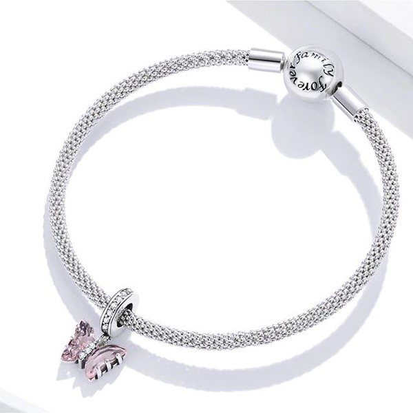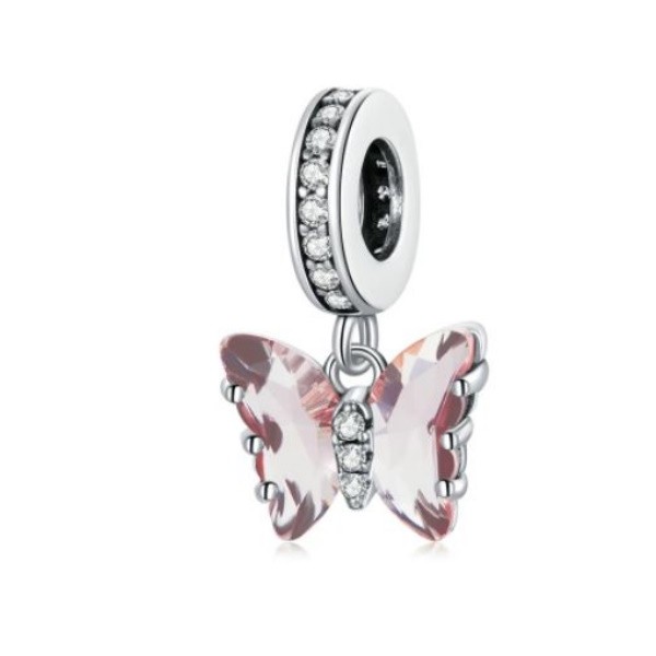 Vyrobené zo striebra, zdobené farebnými zirkónovými kryštálmi, na ozdobné náramky a náhrdelníky. Veľkosť 1,7 × 1 cm, váha 1,3 g Prívesok je kompatibilný s náramkami typu Pandora a Pandora.