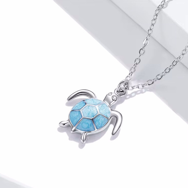 Ez a gyönyörű, 925 sterling ezüstből készült nyaklánc nemcsak eleganciát sugároz, hanem a természet szépségét is magába foglalja. A teknőst ábrázoló medál kék zománcozással és csillogó fehér cirkóniumkristályokkal van díszítve, így minden tekintetet magára vonz. A teknős, mint jelkép, a hosszú élet és az állandóság szimbóluma, mely ősi kultúrákban a bölcsességet és a kitartást jelképezi. A platinabevonatú lánc 44 cm-es hossza és mindössze 3 g-os súlya kényelmes viseletet biztosít a mindennapokban vagy különleges alkalmakra. Ajándéknak is tökéletes választás, hiszen nemcsak stílusos kiegészítő, de egy mélyebb jelentéssel is bír, mely örökre emlékezetes marad. Válaszd ezt az ezüst nyakláncot, hogy még különlegesebbé tedd megjelenésed vagy kedvesed napját!