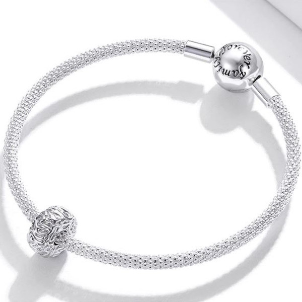 Perlový prívesok zo striebra zdobený geometrickým vzorom. Jeho veľkosť je 1 × 0,5 cm. Prívesok je kompatibilný s náramkami typu Pandora a Pandora.