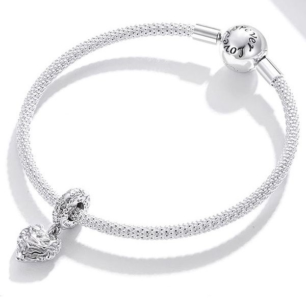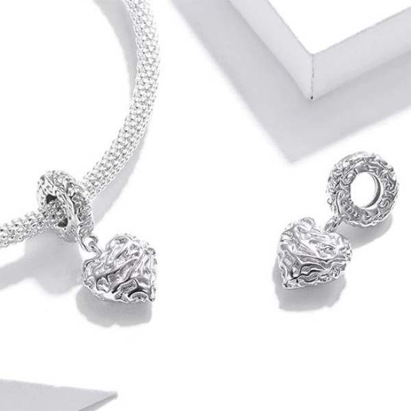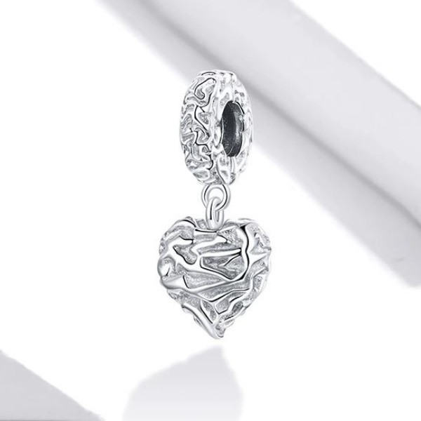 Srdiečkové kúzlo zo striebra, zavesené na obruči, na náramky a náhrdelníky. Jeho rozmer je 2,1 × 0,9 cm. Prívesok je kompatibilný s náramkami typu Pandora a Pandora.
