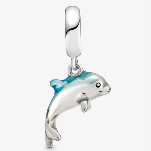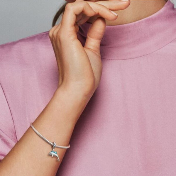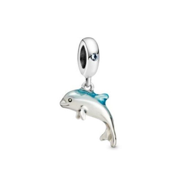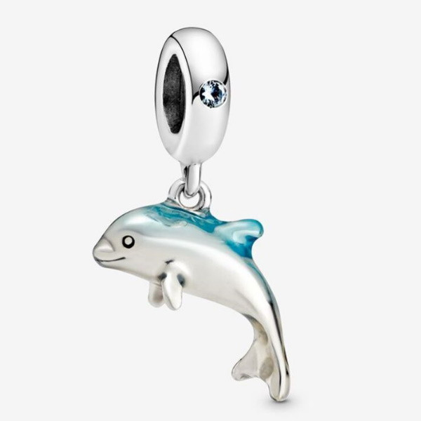 Vyrobené zo striebra, zdobené zirkónovým kryštálom, na náramok a náhrdelník s kúzlom delfína. Hmotnosť 1,5 g Prívesok je kompatibilný s náramkami typu Pandora a Pandora.