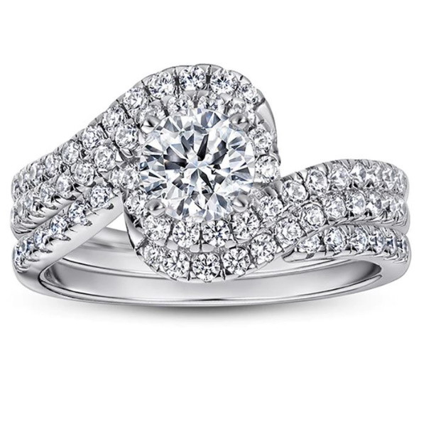Dvojdielny zásnubný prsteň vyrobený zo striebra, zdobený bielym zirkónovým kryštálom.