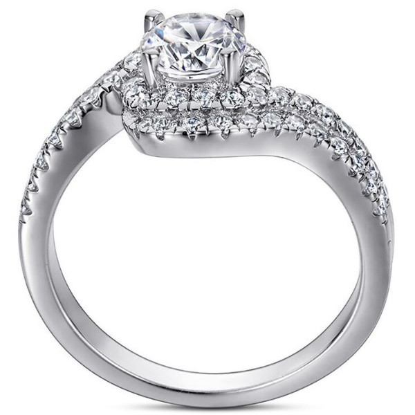 Zásnubný prsteň vyrobený zo striebra, zložený z dvoch kusov, zdobený bielym zirkónovým kryštálom.