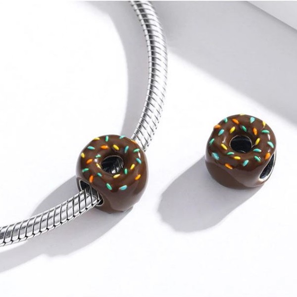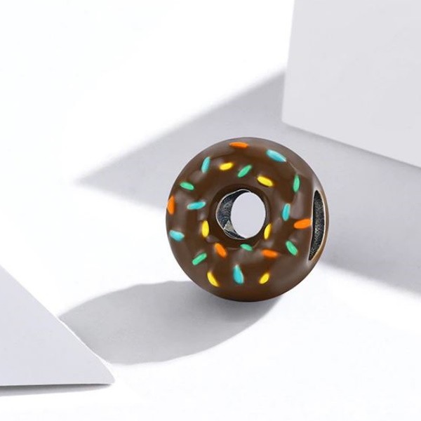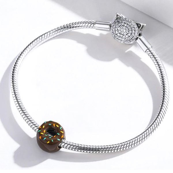 Donutové kúzlo zo striebra, zdobené farebným smaltom, na náramky a náhrdelníky. Jeho rozmer je 1,1 × 0,8 cm. Prívesok je kompatibilný s náramkami typu Pandora a Pandora.