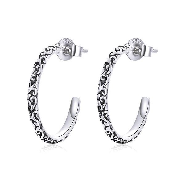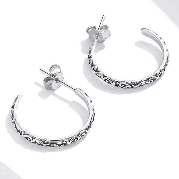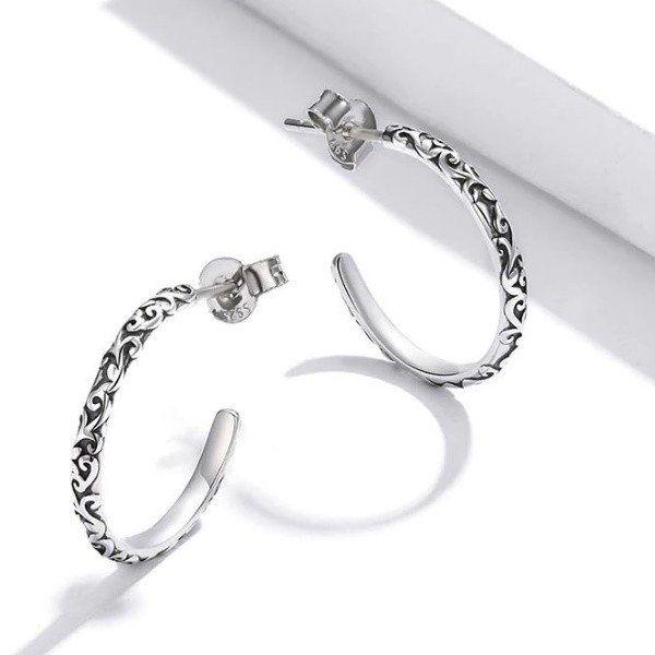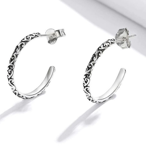 Dámske náušnice vo vintage štýle vyrobené zo striebra, zdobené klasickým indigovým vzorom. Veľkosť 2,0 × 0,2 cm, váha 2,3 g.