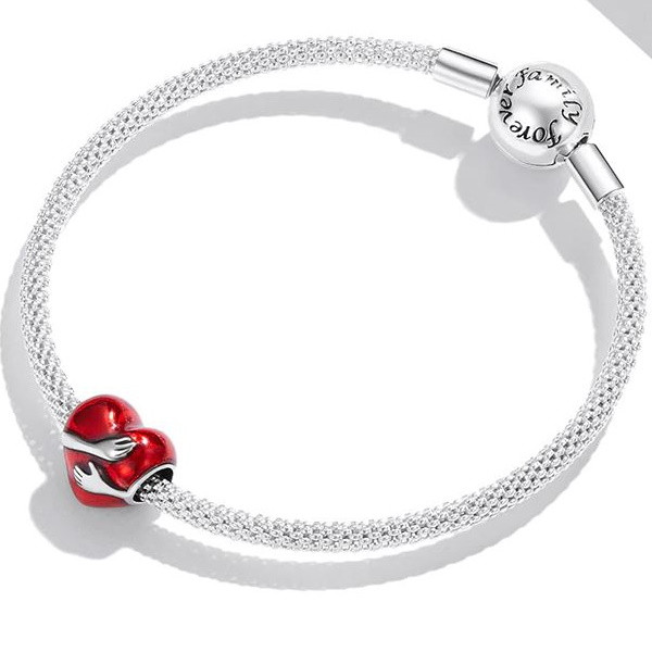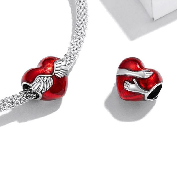 Vyrobené zo striebra, na náramku a náhrdelníku s vyobrazením anjela strážneho objímajúceho červené srdce. Veľkosť 1 × 1 cm, váha 1,8 g Prívesok je kompatibilný s náramkami typu Pandora a Pandora.
