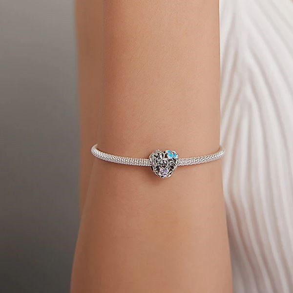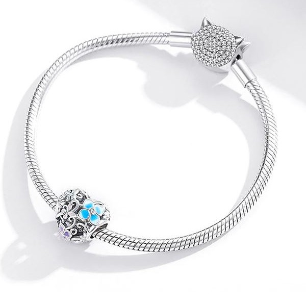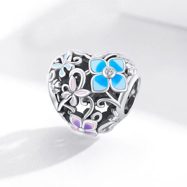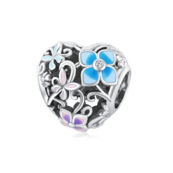 Vyrobené zo striebra, zdobené farebnými kvetmi a motýľmi, na ozdobný náramok a náhrdelník v štýle vintage. Veľkosť 1,1 × 1,2 cm Prívesok je kompatibilný s náramkami typu Pandora a Pandora.