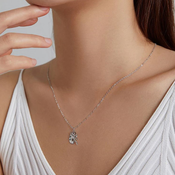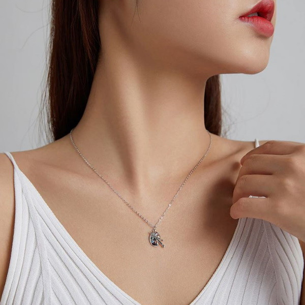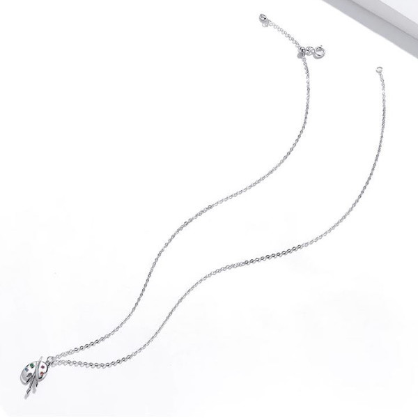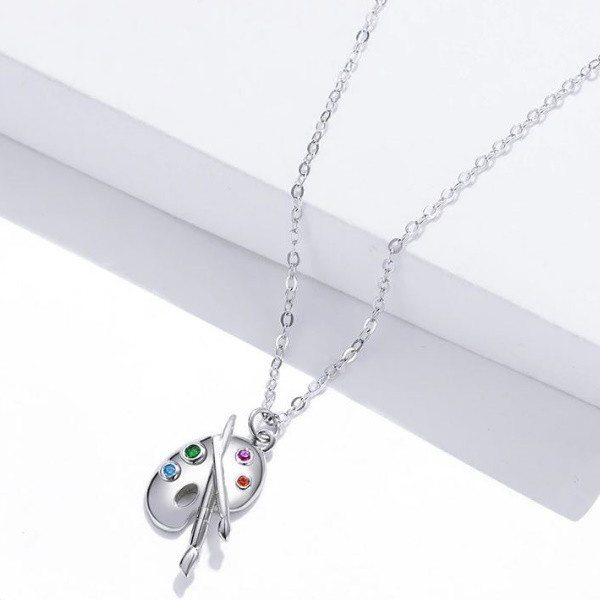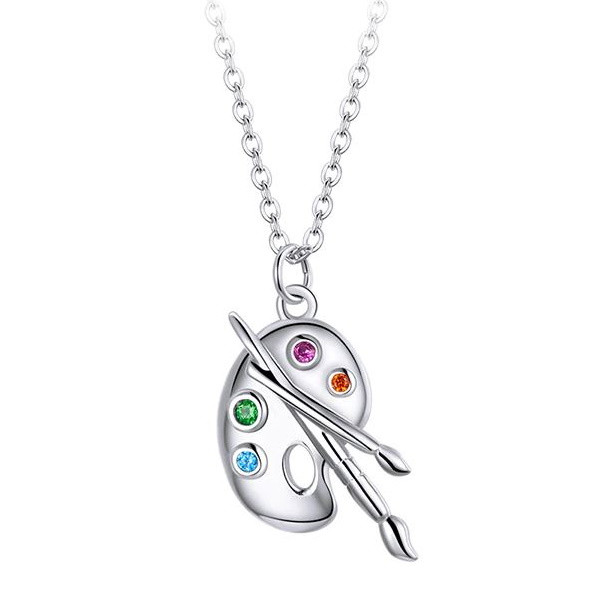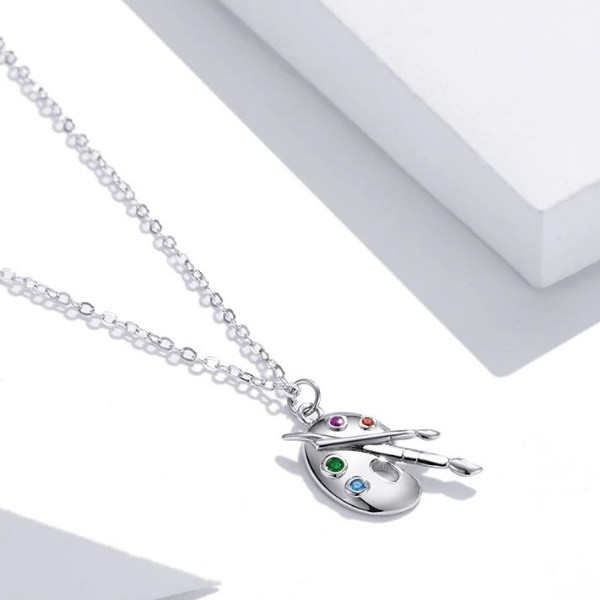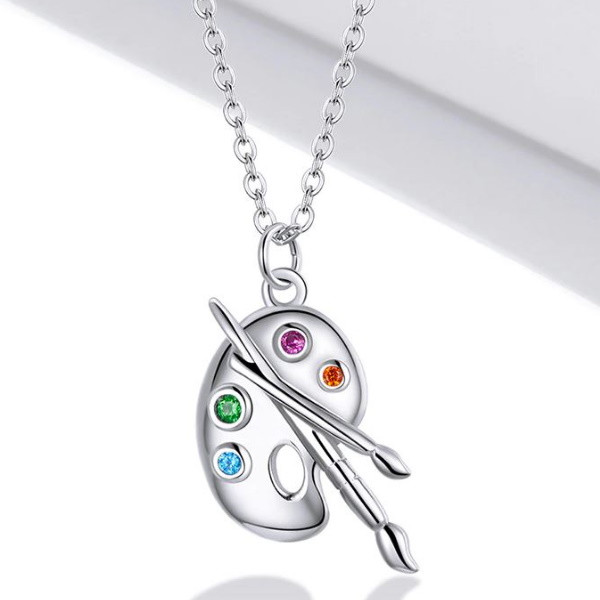 Náhrdelník vyrobený zo striebra s príveskom znázorňujúcim maliarsku paletu zdobený farebnými zirkónovými kryštálmi. Retiazka je dlhá 44 cm a váži 2,2 g. Veľkosť prívesku je 1,5 × 1,4 cm.