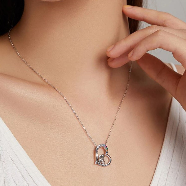 Náhrdelník zo striebra so srdiečkom zdobeným farebnými zirkónovými kryštálmi. Retiazka je dlhá 44 cm a váži 2,8 g. Veľkosť prívesku je 1,8 × 1,7 cm.