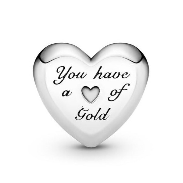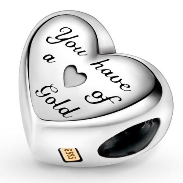 Prívesok v tvare srdca zo striebra, zdobený na jednej strane ružovým zlatom a nápisom na druhej strane. Dá sa nosiť na náramku alebo náhrdelníku. Hmotnosť cca. 1,5 g Prívesok je kompatibilný s náramkami typu Pandora a Pandora.