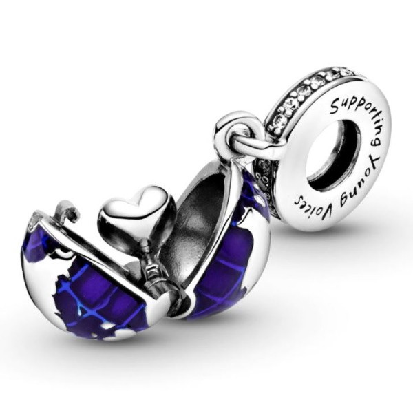 Vyrobené zo striebra, zobrazujúce zemeguľu, otvárateľný prívesok zdobený zirkónovým kryštálom. Dá sa nosiť na náramku alebo náhrdelníku. Váži 1,5 g Prívesok je kompatibilný s náramkami Pandora a Pandora.