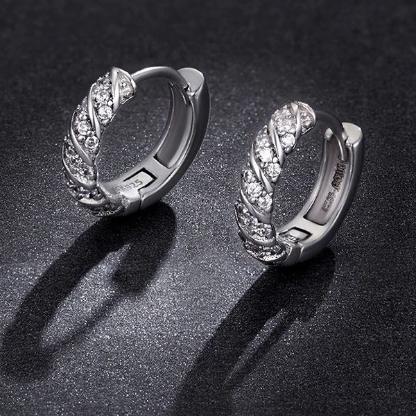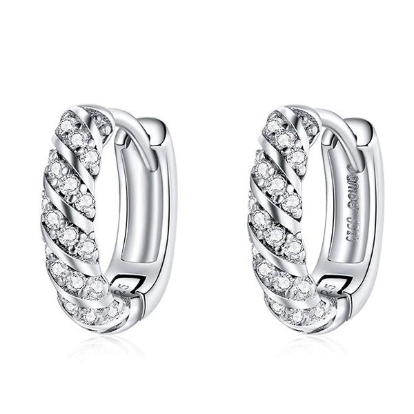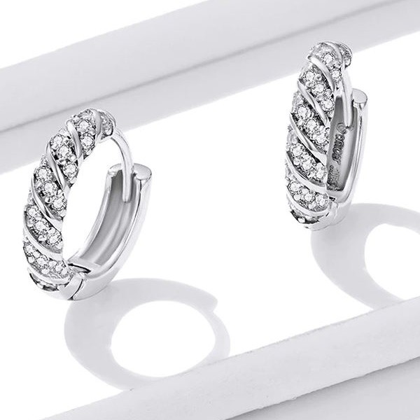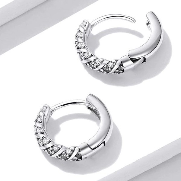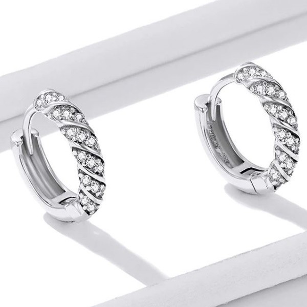 Elegantné dámske náušnice vyrobené zo striebra zdobené bielymi kryštálmi zirkónu. Veľkosť 1,2 × 0,3 cm, váha 2,1 g.