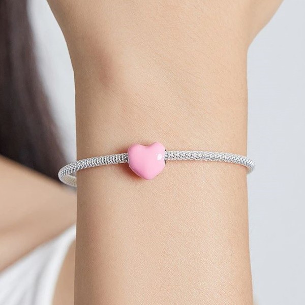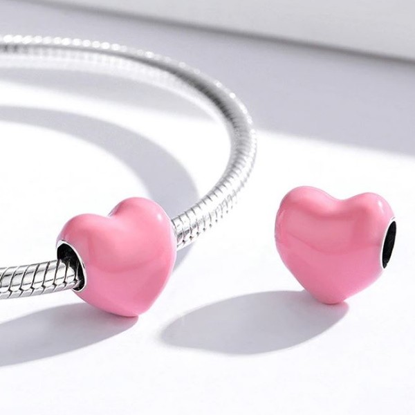 Strieborné kúzlo, srdce, ružové