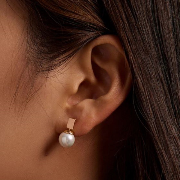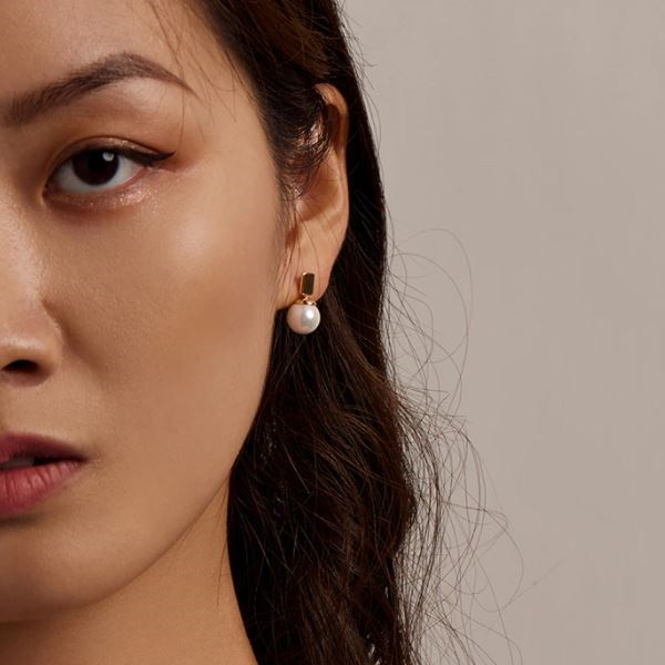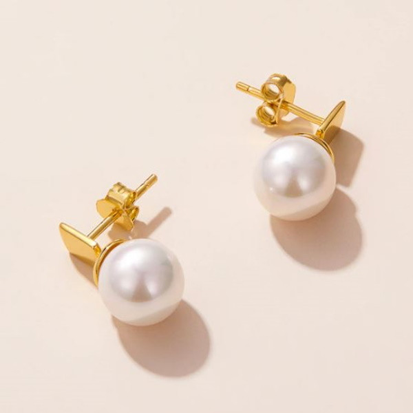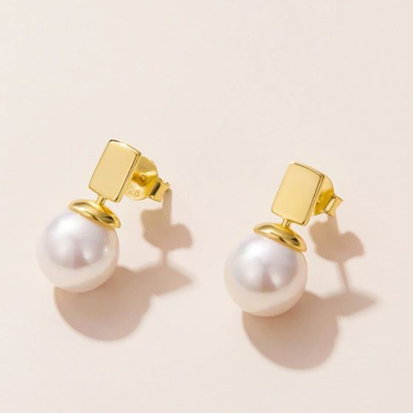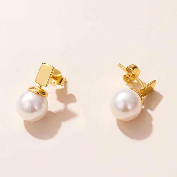 Dámske náušnice vyrobené zo striebra a pravých perál, čiastočne pozlátené. Veľkosť 1,6 × 0,9 cm, váha 3,0 g.